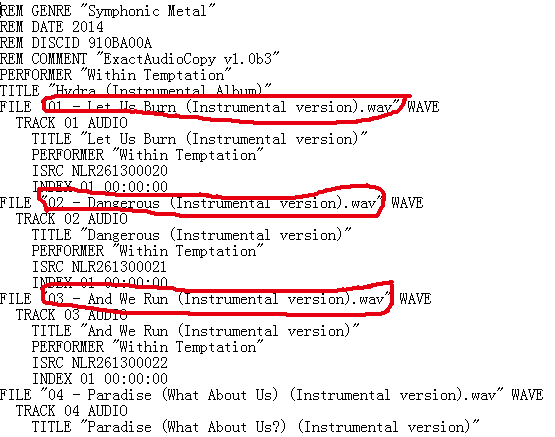 注意:个别cue文件播放器不能识别解决方案见九楼