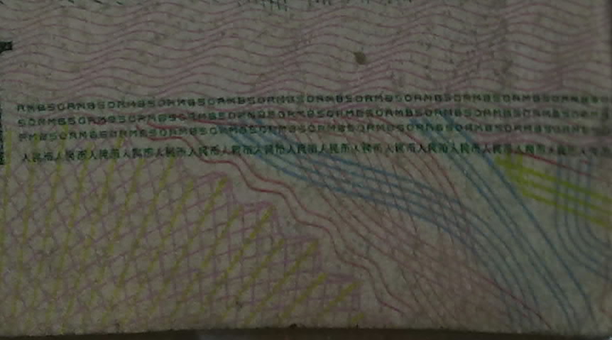 我今天用N97拍了一张50元的人民币,最下面有三条线,用N97拍出来放大来看,居然清清楚楚地看到是两行字母和一行汉字!废话不多说,上图!