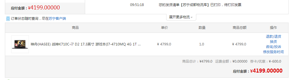 苏宁4199入手神舟K710C-I7 D2