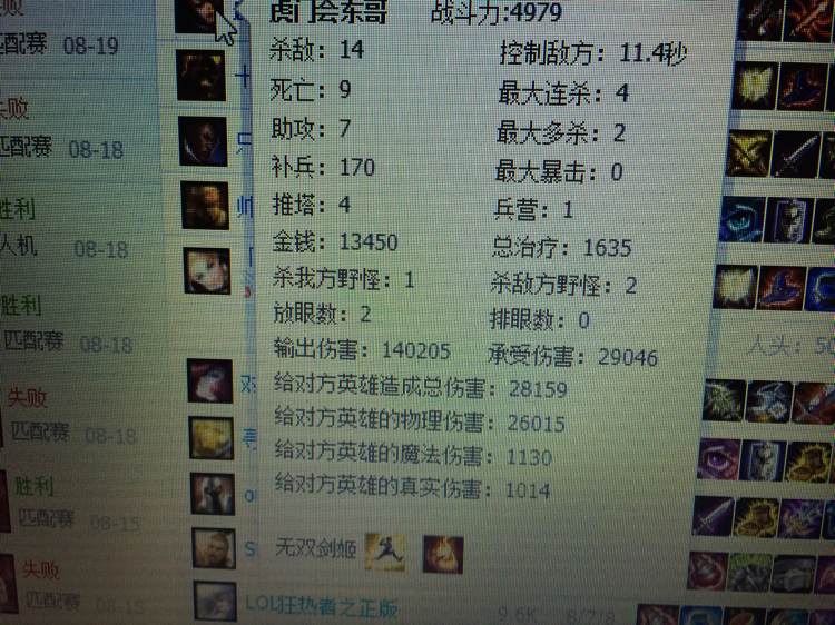 。。。辅助级别的伤害,打一局35分钟之内的,伤害一般伤害都在12到18万,打好了,伤害能在22万左右,8万。。。哎,洗洗睡吧