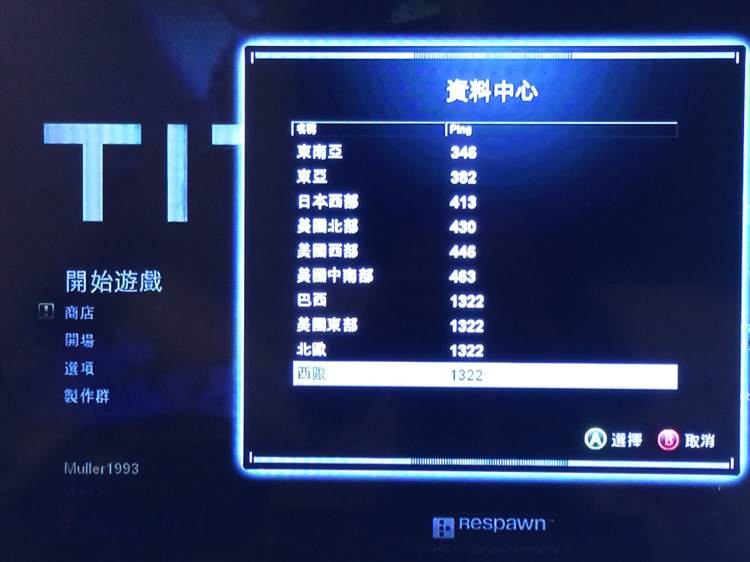 系统选择繁中之后Titanfall就连接不了澳服了吗?