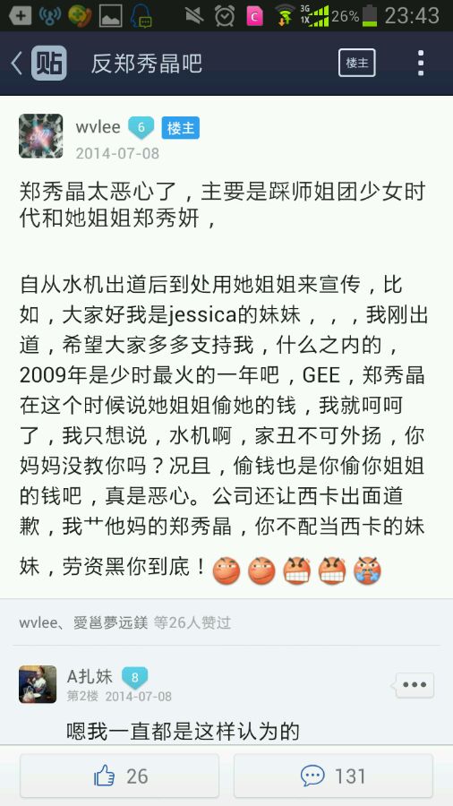你也是牛逼啊,有郑秀晶的地方就有你。