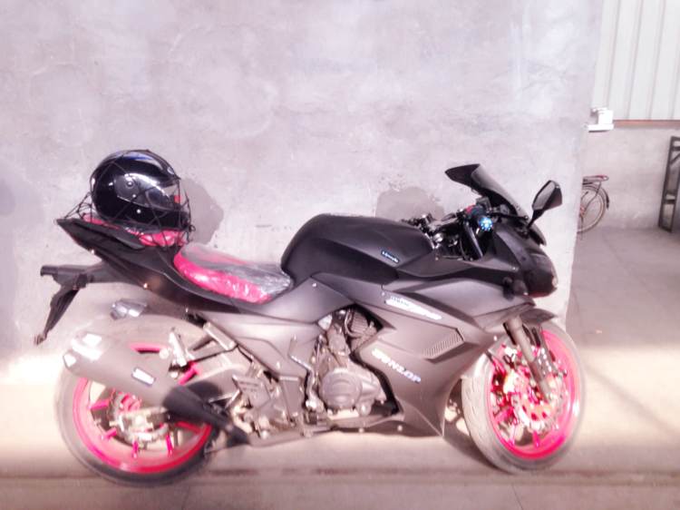 出售一部r2款赛车,磨砂黑,全新车宗申250排量,链条机加平衡轴。前置减震,双火炬排气管,液晶仪表大灯自己改了LED灯。还有碟刹锁,黑色头盔,黑色手套。还是新车,买来四五天,一百多公里,由于家里极其不爽,逼着我卖掉。还没上牌,发票合格证都有。可以上牌的,看上的发信息,不要打电话,诚心买的在联系,只有下午5点半过后才有空,诚心买要看车的在发信息,忙着了。照片随便乱拍的,实车超帅