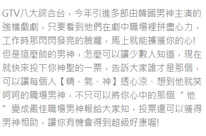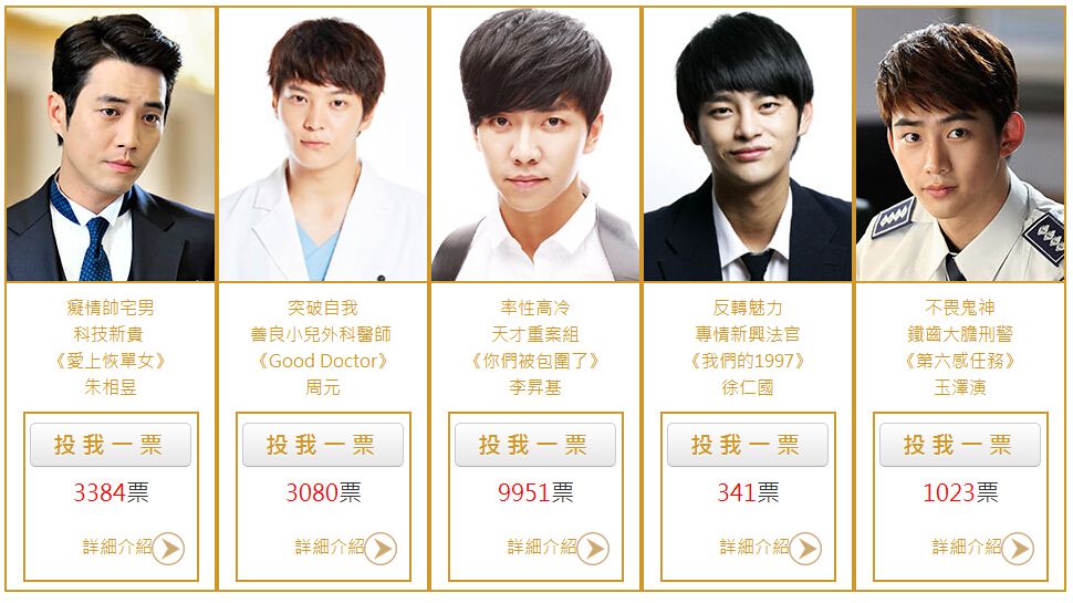 140821*消息*台湾GTV最佳职场男神大票选朱相昱位居第二