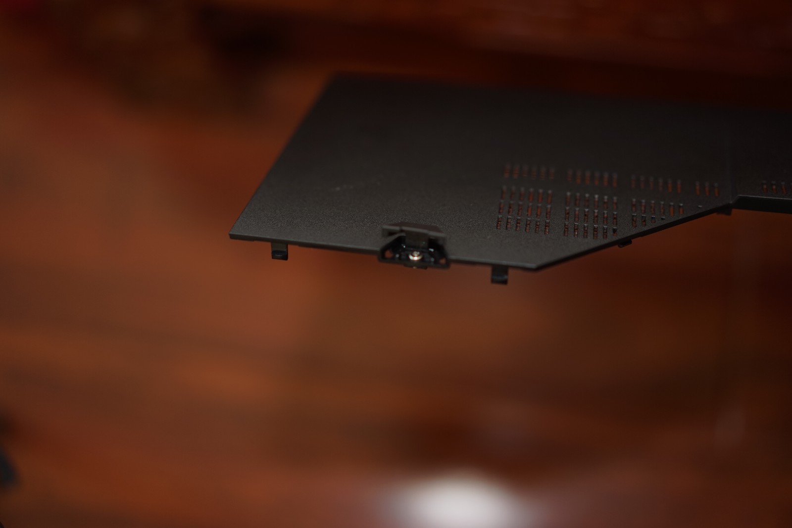 肌肉感十足的D面 最上方是电池与电池卡口,左右两侧是为880M准备的的导流槽,右下角是2.1音响的低音炮,中部则是大块的快拆板,便于玩家更加方便的添加内存与更换硬盘。