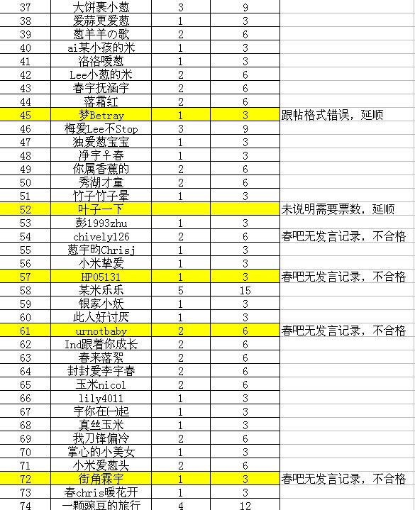 请以下各位米(如二楼图所示)私信 天使ai宇春 (即本ID)以下内容