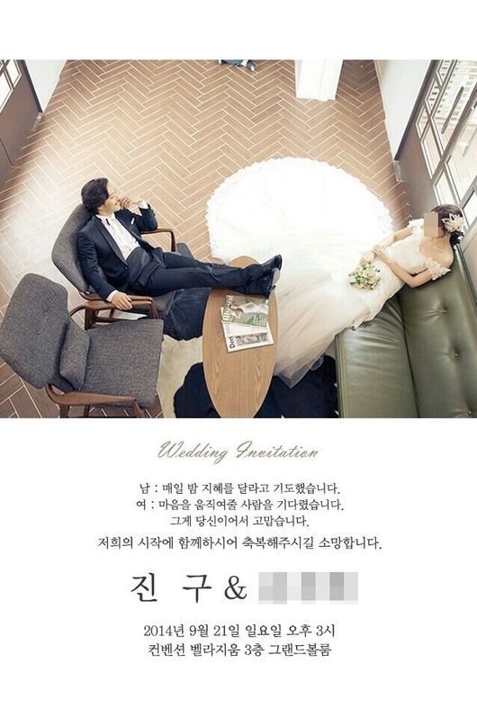 心情较复杂。。想说为什么不早点举行,趁我还在韩国的时候。。又想说还是不要那么早举行啦,因为那天起你就是别的女人的男人了