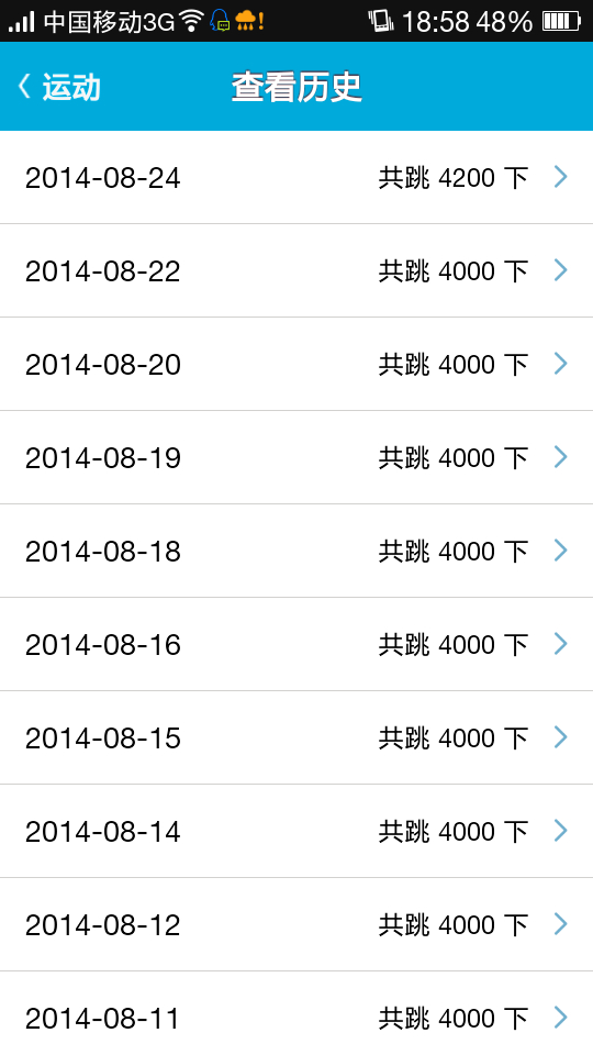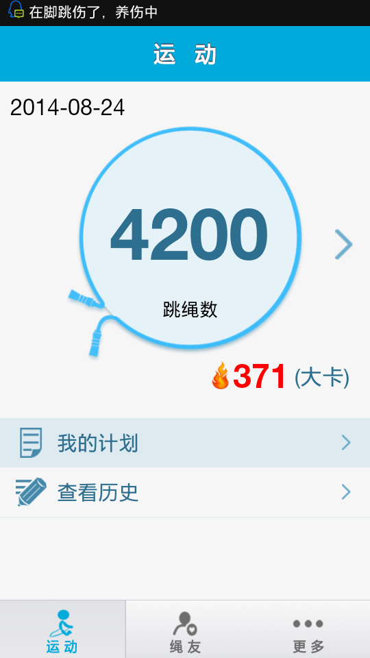 上周跳绳5天,没完成自己的6天计划,惭愧啊 下周一定完成计划。加油