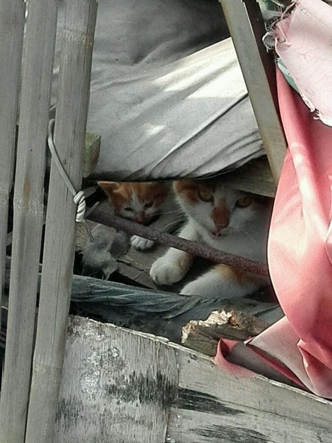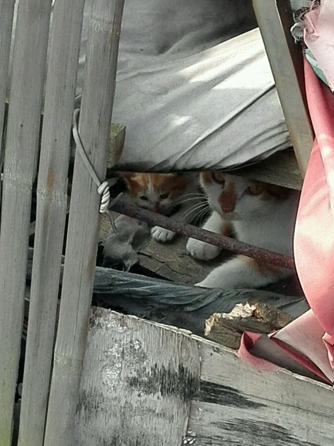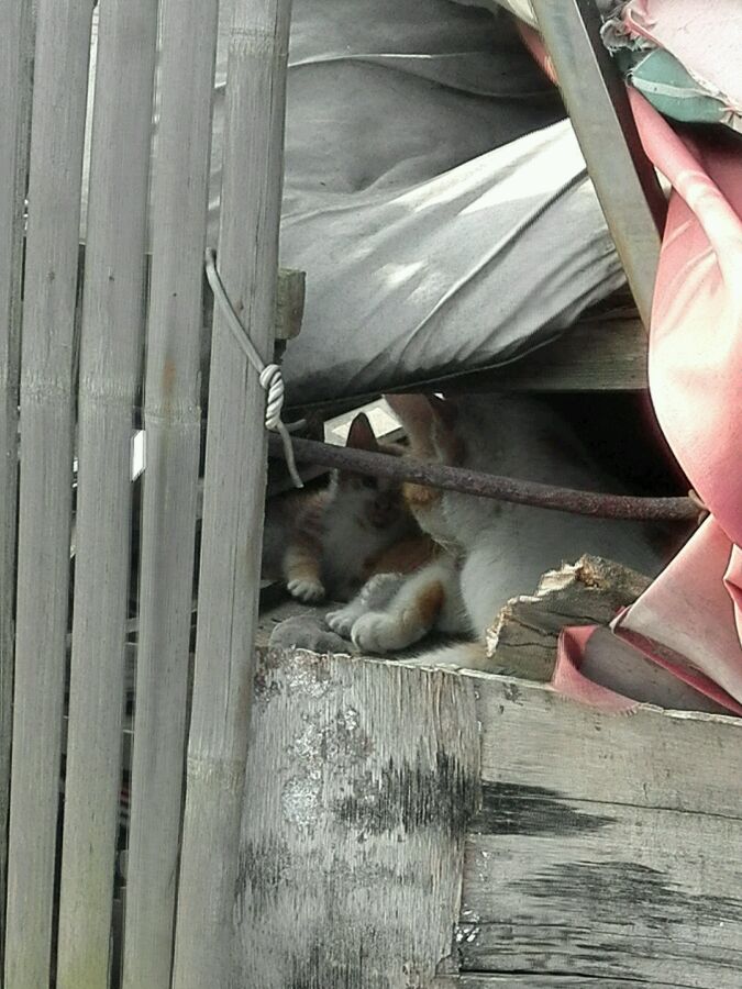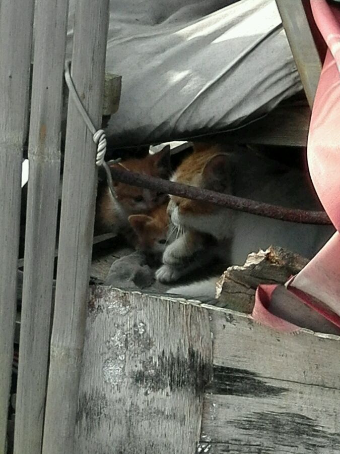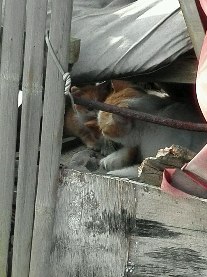 一共有两只小的,大猫挡在前面有一只没拍到;没敢离太进怕被抓,大猫叫的有点恐怖,估计又要搬了太对不住了。。