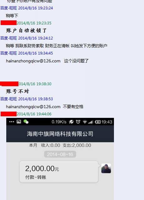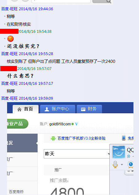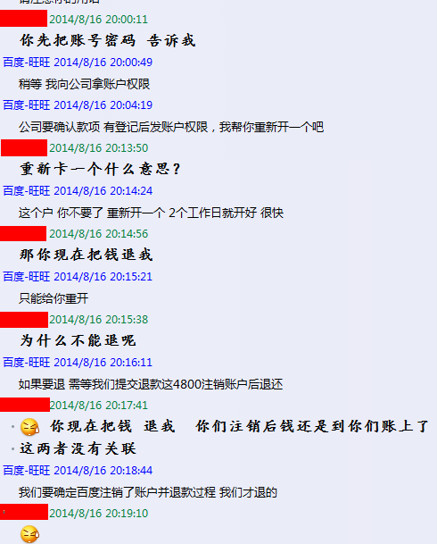 希望大家不要上当受骗,大家有时间一起去百度举报他们,他们的作案手法相当卑鄙,基本流程,就是说先帮你百度开户,然后说户开好了,发个截图你,等你找到要百度推广的账号密码的时候 ,又说财务搞错了,然后基本就找不到人了,请大家注意了。真心的希望网友不要上当受骗!