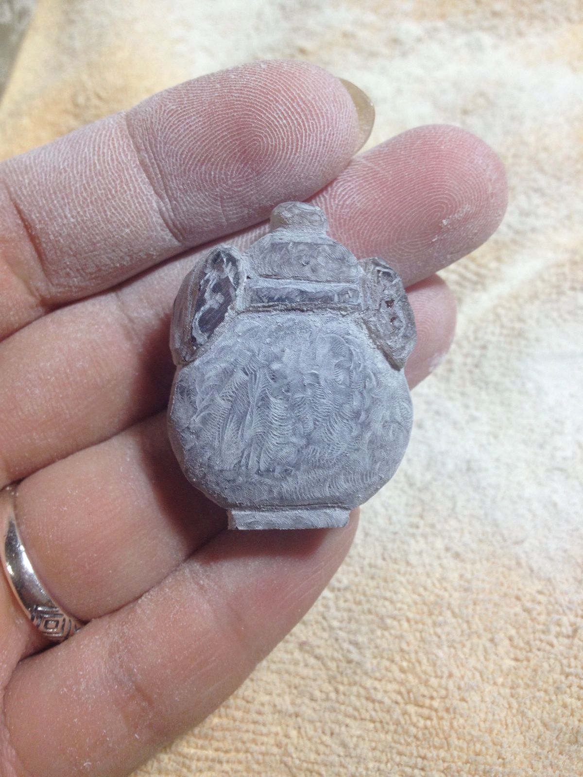 还是缅甸琥珀,第一个是宝瓶,料子不够厚,成品有些扁,第二个是福寿桃,自己觉得抛光好像进步了。