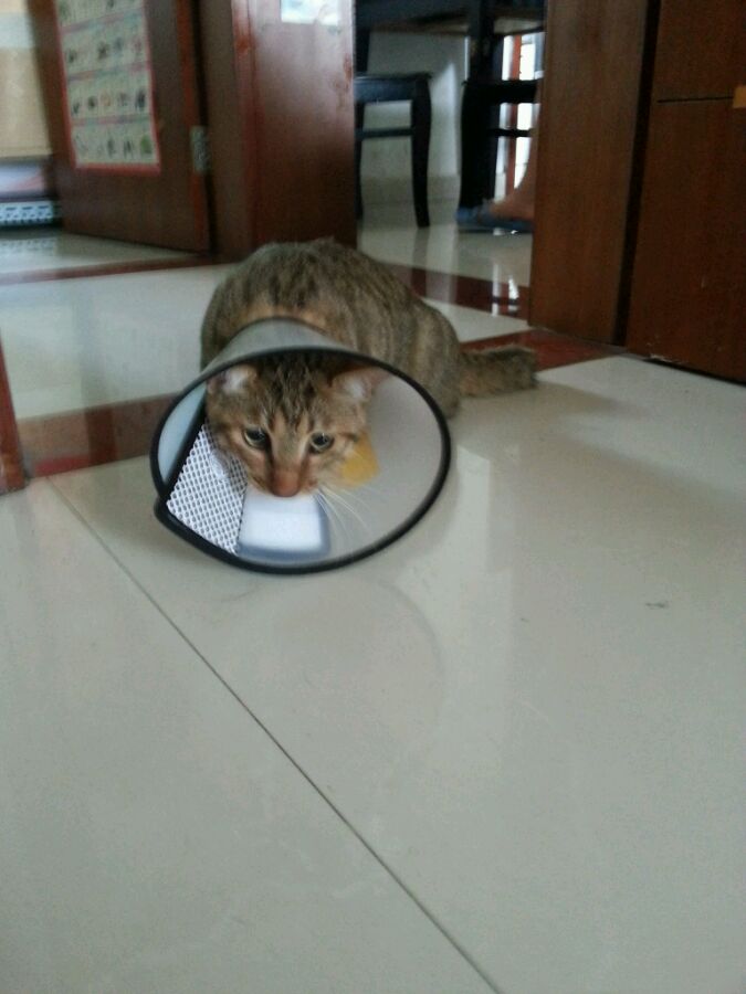 昨天带大米去割蛋蛋。找邻居借了个鸟笼装大米,大米第一次出门,大概是吓到了,一路鬼哭狼嚎。做完手术接回家后,因麻药药效还没过,跟喝醉一样在家四处游荡。带着伊丽莎白圈吃饭不方便,干脆取了下来,幸好也没去舔伤口。不过它看人的眼神,感觉写满了委屈啊……