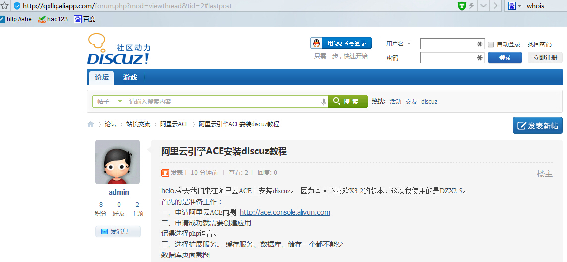 阿里云引擎ACE安装discuz教程