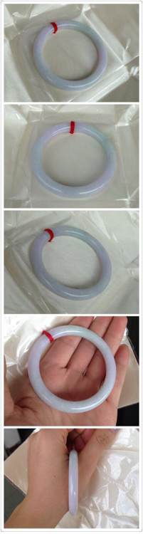 之前看中的一只春彩镯子, 今天终於收到了, 费了好大的劲,卖家跑了好几家快递才能寄出来,今天到手,颜色是淡一点,但太阳下还能看到紫色,而且水头比图片好,只是卖家说的石纹却挺长的,放在室内灯光下挺显眼的,虽然戴上手不太明显,现在在纠结好不好只因为这条石纹而退货,毕竟卖家也特地帮我去出证书和跑那麼多家快递,有点不好意思~