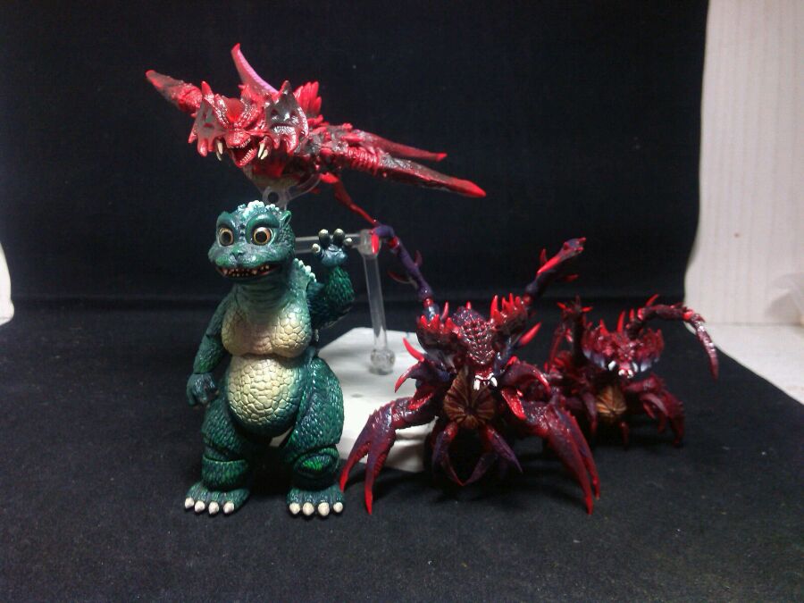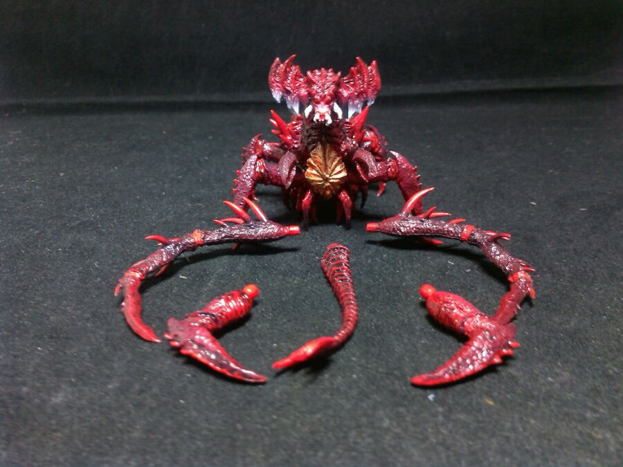 这个嘛,最小幼体,也就是放小之后的幼体。。。就触角,手臂,和2腿可以动,这个不满意。。。。完全就是手办了,对于可动恐而言不太好吧,但是涂装还是很过关的!