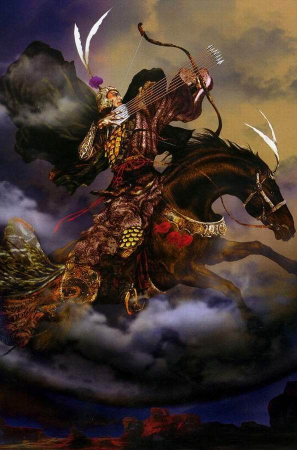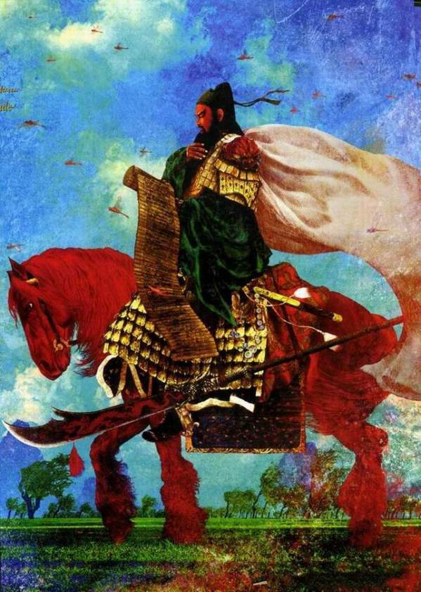 汉国功臣苗裔,三分良将玄孙。绣旗飘挂动天兵,金甲绿袍相称。赤兔马腾腾紫霞,青龙刀凛凛寒冰。蒲东郡内产豪英,义勇大刀关胜。
