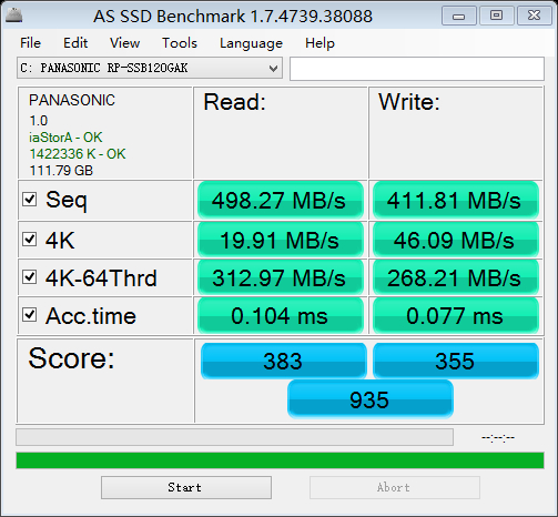 新手入了Panasonic 松下 RP-SSB120GAK 120G 固态硬盘,AHCI驱动和4k对齐均OK,其他指标跟官方数据均相差不多,可是4k写入整整慢了一半,不知道是什么原因,还望大神指点。第一张图是我自己的数据,第二张是官方数据。我看有同样买了这个ssd的网友,数据跟官方相差不多啊?为什么我的这个是这样呢?