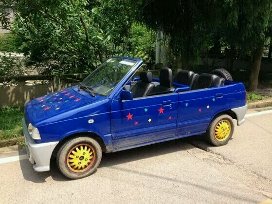 明明不是跑车,非要改装成跑车的样子,象后面这台蓝色的小车,我已经完全分辨不出来它是什么车子了!