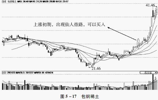 仙人指路出现在拉升阶段的初期,是主力展开向上攻击性试盘动作,主要目的是测试盘面筹码的稳定度和上阻力,同时暗中发出进一步攻击指令。股价在经过短期调整后,再度展开总攻的时间已经十分逼近了。因此,在当天反复盘跌的过程中,主力通过打压洗盘,为即将到来的正式拉升做好充分的蓄势准备。