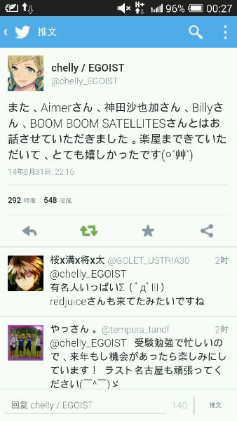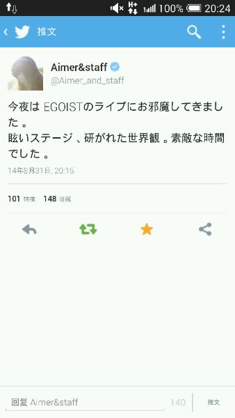 和Aimer说了话。到了后台,真的很高兴。