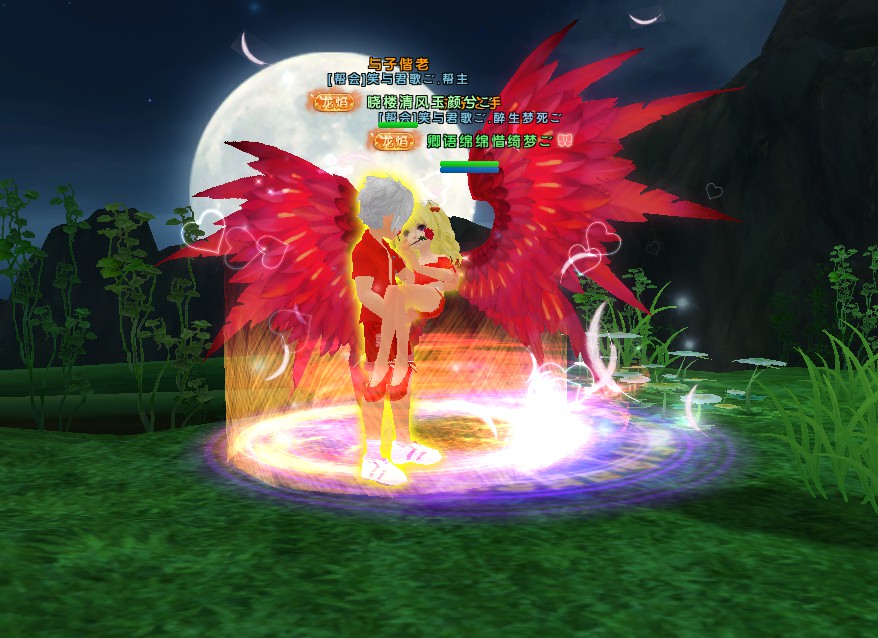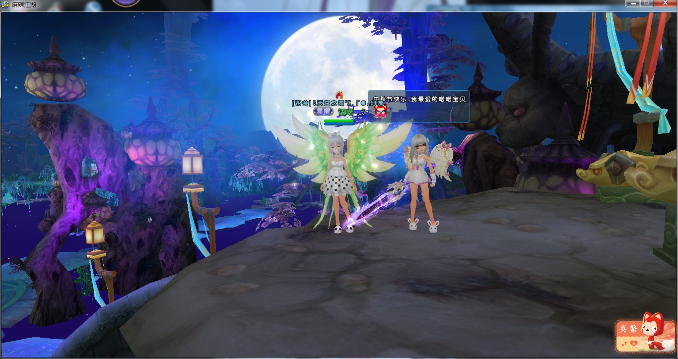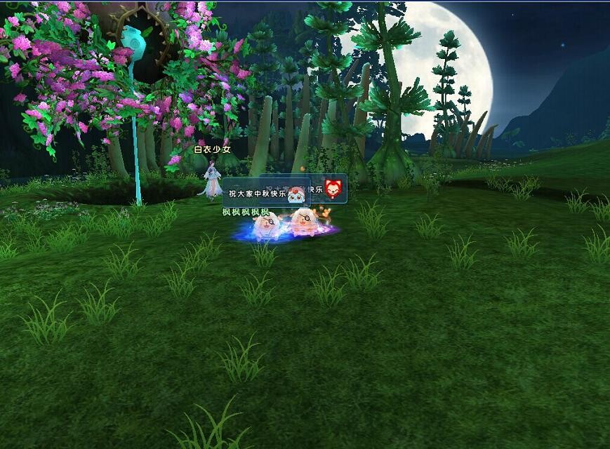 活动内容:中秋节是后羿为了思念自己的妻子,同时中秋节又有家人团员的意思。本次活动游戏截图活动要求:同时发表两张图,一张是自己与自己的另一半在月下相拥的截图,如果不是夫妻关系的小伙伴则在附近聊天发送祝福