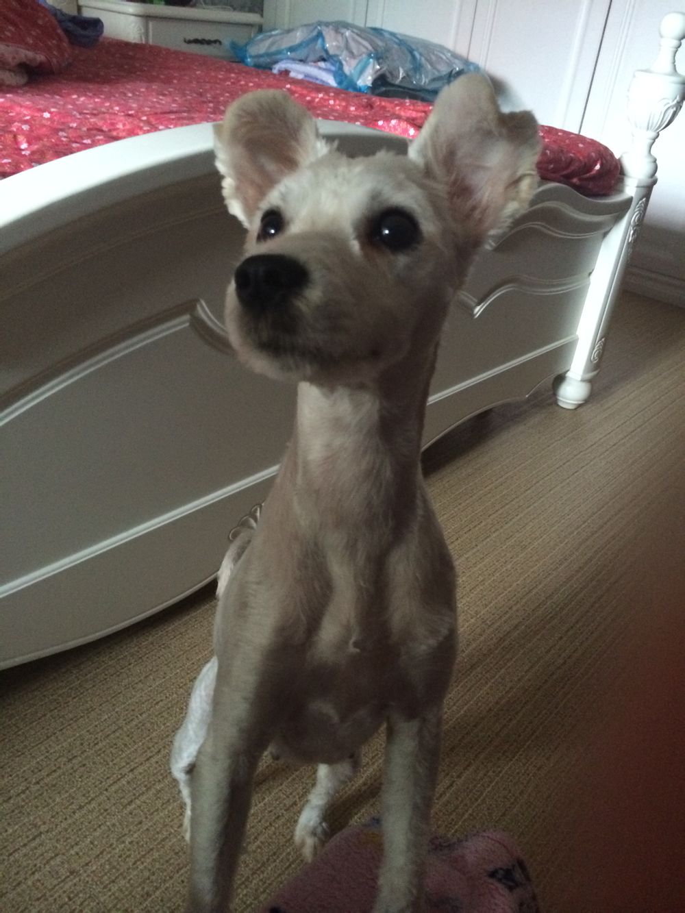 回复 比熊笨笨宝宝 :剃光了,不知道呢,不过看现在背部有的地方卷有的地方不卷。不过没有体味。