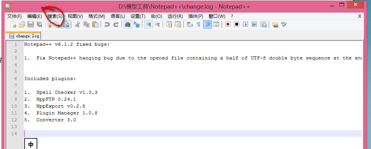 接着就要用到Notepad++,打开Notepad++,点击搜索,选择“在文件中查找”