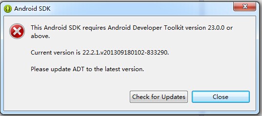 “This Android SDK requires Android Developer Toolkit 23.0.0 or above”,效果图如下: