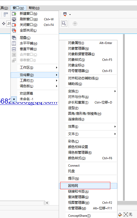 打开窗口/泊坞窗/因特网