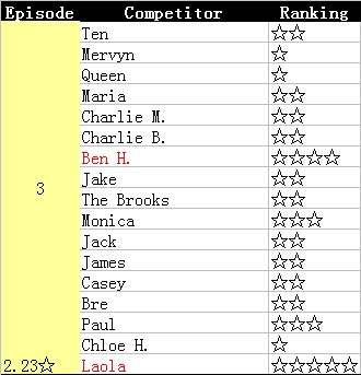 我来了!这一集有两个很不错啊,BEN和Laola好棒