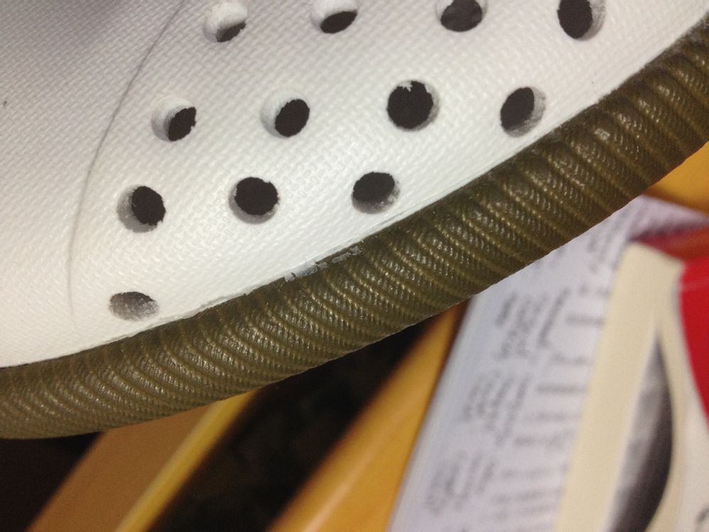 有货上购买,觉得做工非常一般,整个鞋底与鞋面连接处都有很多的胶水痕迹,鞋底甚至涂漆不全,鞋面也不整洁,觉得不是全新品。总重要的是并没有像其他native鞋一下吊牌穿在洞洞上,是我在鞋盒里面发现有吊牌的那几张卡片。这样的质量问题真不知道是否为正品,求大神鉴定