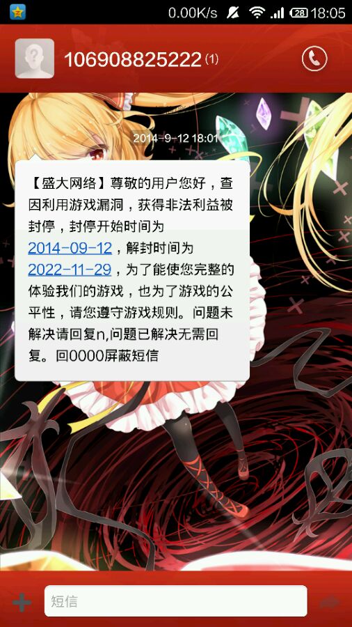 原因是我和一个71刺客 两个51萝莉刷了一次地狱巨人 到了boss就加速一套秒了boss 到了开箱子那里出了个最终板子 然后我就掉了 在上线就被封号