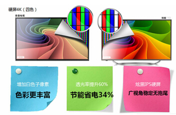 其实之前的4K市场,产品繁多,消费者面对这么多的产品很是烦恼。我们首先就要了解4K电视,首先4K电视想要达到4K画质,就增加更加更多的像素点,势必会影响电视画面的亮度。现在LG Display推出RGBW的4色4K技术,就是在原有的RGB中,加入W子像素,也就是白色像素,构成RGBW结构,不仅可以提高透光率,还可以提高画面亮度,让画面色彩更鲜明。众所周知的,画面的亮度越高,呈现出来的色彩也就更丰富。也正是因为如此,4色4K硬屏电视的画面,就会比一般的4K电视好看的多。