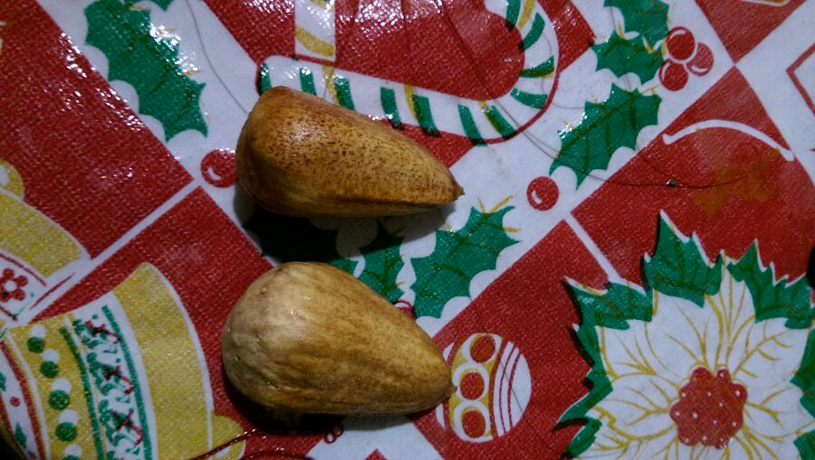 这是在植物园棕榈区捡的落地籽,不知何物,莫非是滴血莲花?