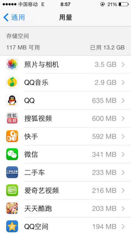 不说游戏,你就是下个qq微信微博什么的,缓存也去了一两G了,还不算照片和其他应用