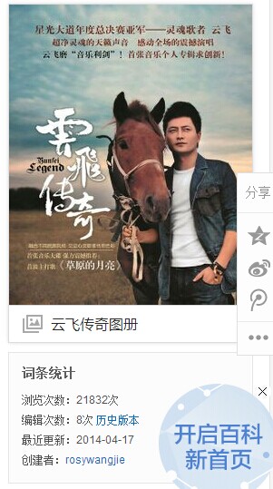 重要建议:亲戚们进贴吧的时候,最好是在百度搜索“云飞”,然后根据搜索到的条目再进贴吧,还有关于搜索到的“云飞百度百科~和云飞传奇百度百科”希望大家多多点击,可以增加词条的搜索量,能为咱们家的偶像增人气,这个很重要的,也很简单,举手之劳,但是点击的数量一直就没有上去,亲戚们,注意一下下哈![[玫瑰]](/static/emoticons/u73abu7470.png)