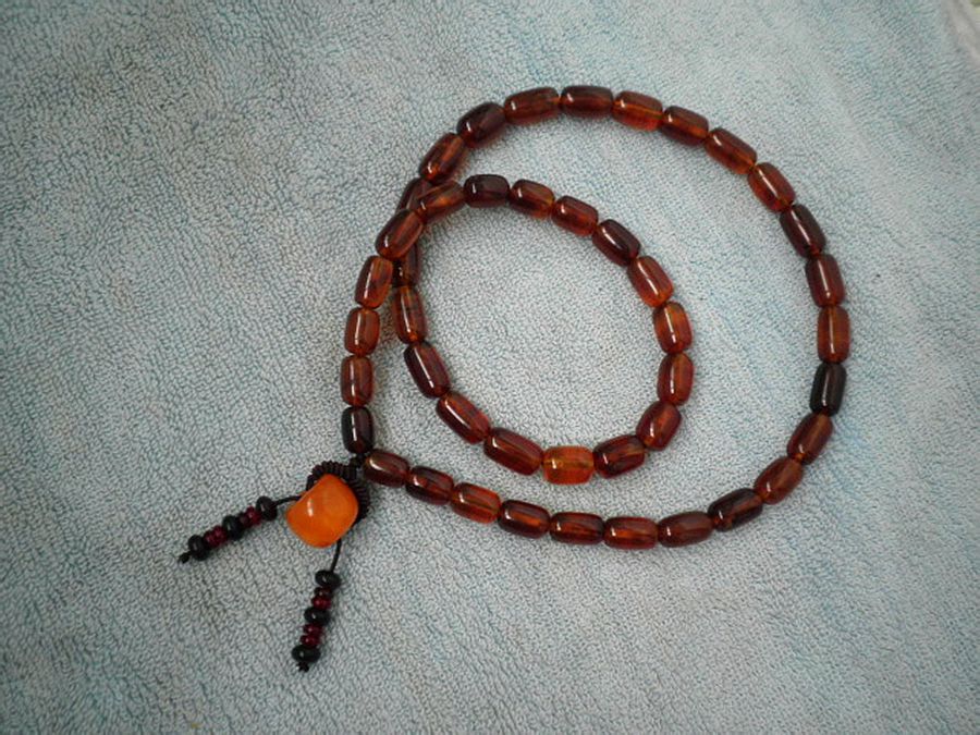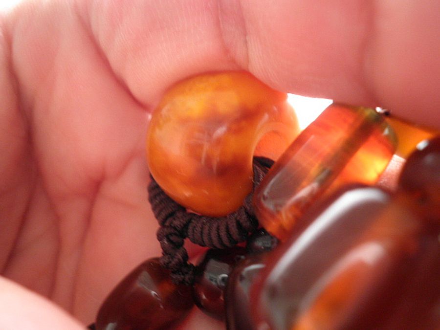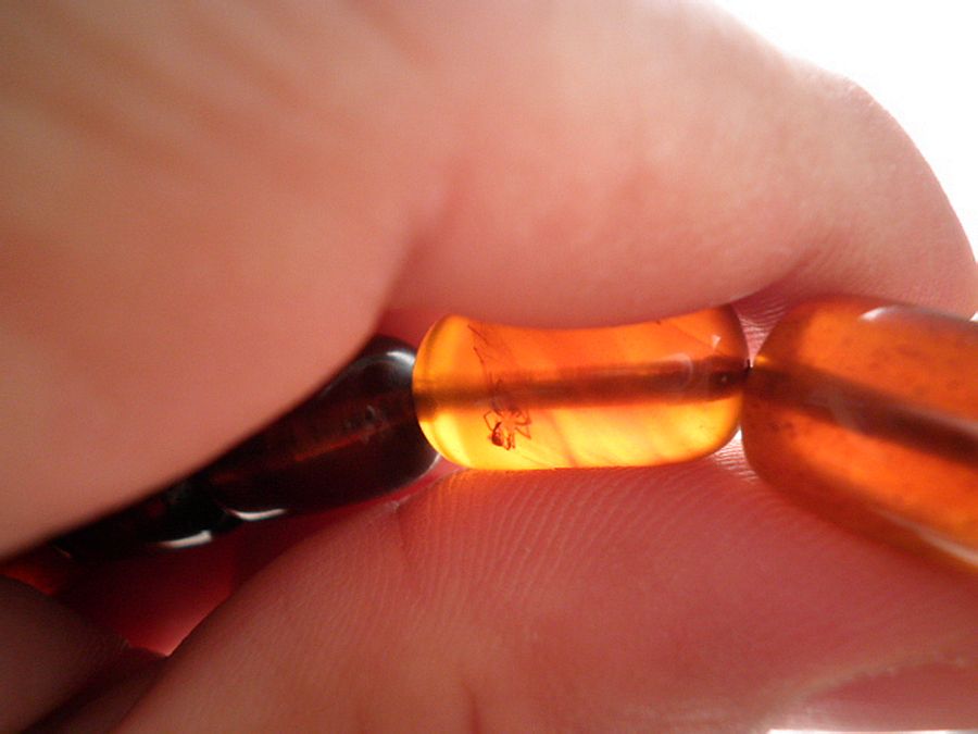 前几天看马未都《收藏》节目,说到虫珀,就很好奇看看自己的串串,居然发现两颗有……
