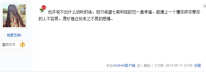 之后是送祝福语特别好的几位亲,我截图发出来,大家觉得不错可以在楼层中回帖表示支持。数量最高者将获得贴吧会员一个月~!!