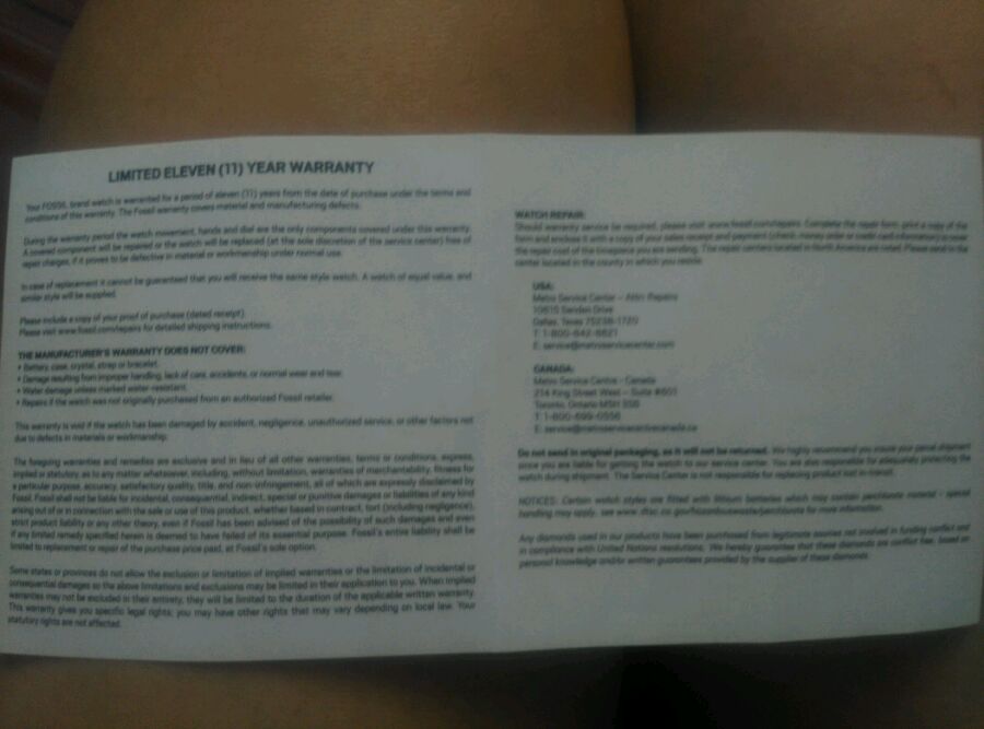 第一次代购,美国代购了一块fossil表,到了之后感到很疑惑啊。首先包装太简单了,就一个白色硬纸的盒子,正面有个fossil,底部有点packaging made in china什么的,一会二楼上图,但是这盒子看起来觉得好粗糙的样子。然后盒子底部一张纸就什么也没有了。有种被骗的感觉。。我在网上看到好多fossil的包装都是铁盒子啊