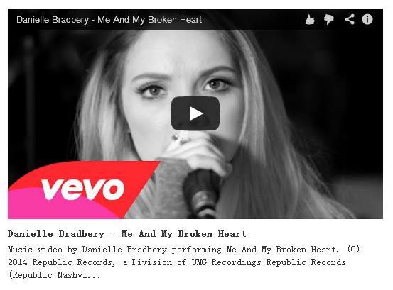 Danielle Bradbery翻唱英国新晋人气乐队Rixton的大热单曲Me And My Broken Heart
