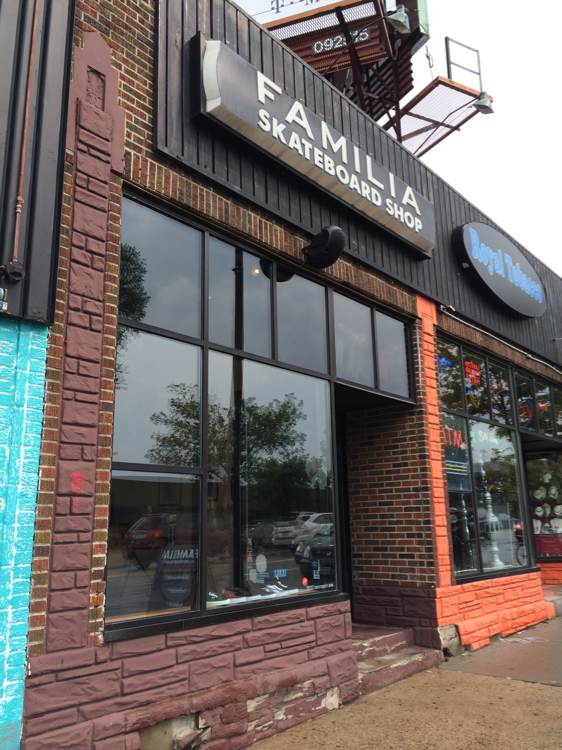 大学在明尼苏达州,在美国中北部。刚到的时候找了很多鞋店都没有找到卖dunk sb的,后来跟鞋店的店员咨询之后终于找到两家滑板店。一家叫familia一家叫cal surf ,两家都有卖dunk sb,有新dunk sb发售时也会同时发售。