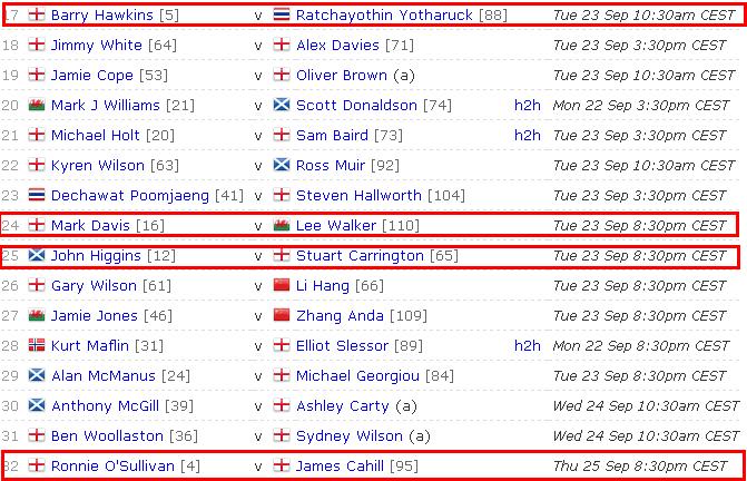 本区高手有丁俊晖、多特、宾汉姆、艾伦,从签表看丁俊晖打进8强机会很大,但是1/4决赛可能有点难度