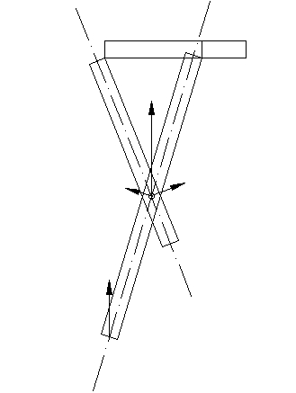 这个时候,开合角<90度的桌腿受到分解出来的切向力的作用,其运动趋势是使得此桌腿开合角变小。