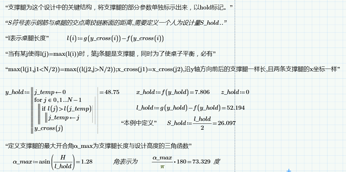我曾经说因为桌腿有些开合角<90度有些开合角>90度,这个桌子就会在支撑的时候稳定,现在我拿最外面的支撑腿与最里面的腿当做特征桌腿来分析。