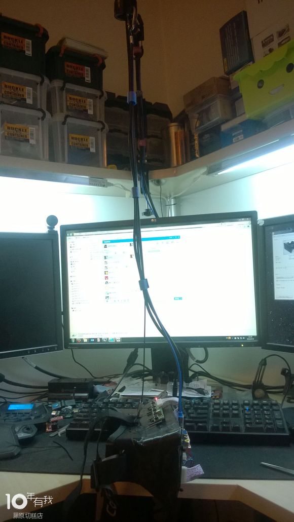 因为自制的DK1和官方的重量差很多,官方的是230g,我的自制是400g,官方DK2是440g,但是被线拌着很不爽,买了个麦克风的支架,结合书架高度,正好~