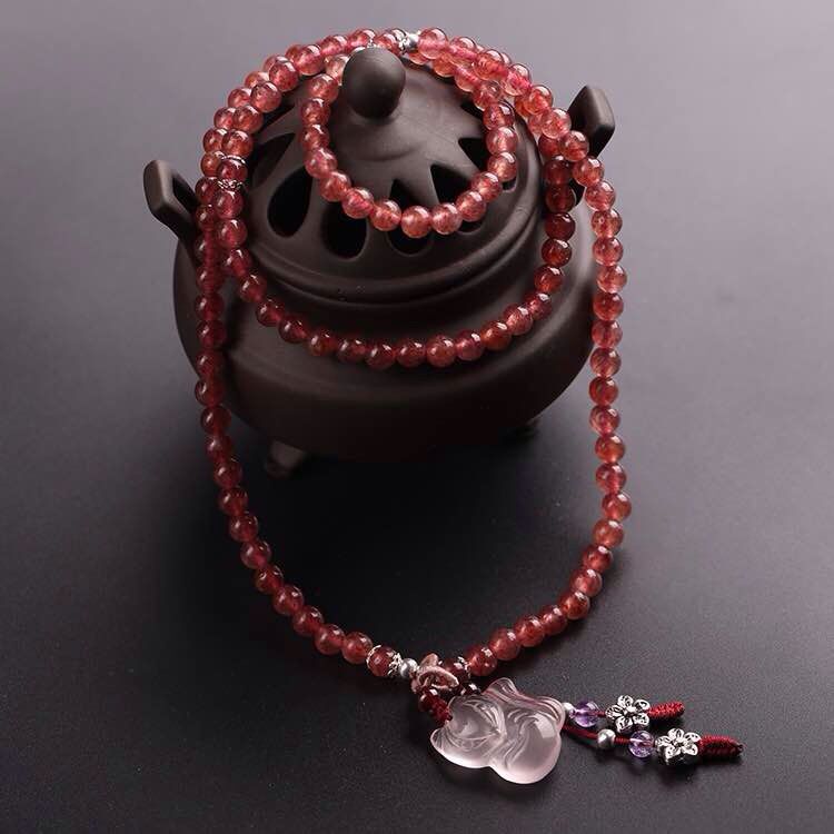 精品草莓晶6mm左右手串+粉晶小狐狸'招爱情防烂桃花哦
