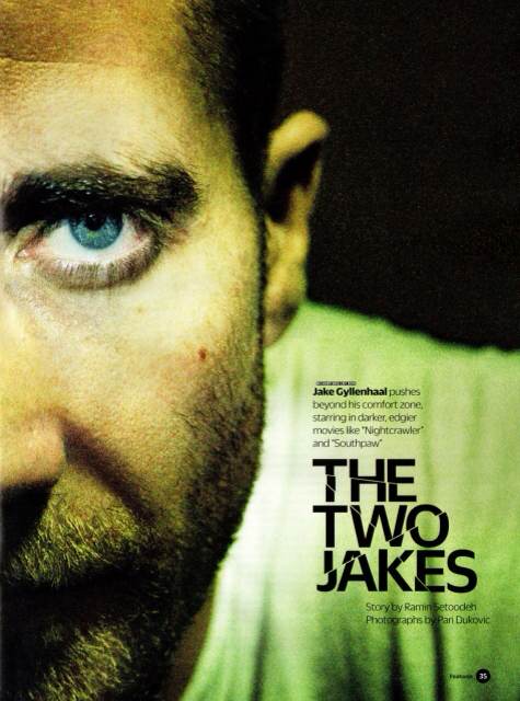身穿带帽卫衣,脖子和手臂上均刺有纹身,正在做冲刺的吉伦哈尔话都说得零零碎碎。那是匹兹堡夏日的某个雨天,天空被闪电点亮。“雷鸣很迷人,”吉伦哈尔一边说,一边用拳头做了个爆炸的动作。四英里的跑步之后(渣翻:之前不是说跑八英里么?),他进入擂台开始另一段高强度的训练。健身房播放的说唱音乐声中,手指全都缠上绷带的吉伦哈尔对着他的教练和另一个拳手猛击。这个夏季的头两周大部分时间都在拍《左拳》中关于拳击的戏份。现在他正在为挂靴前的最后一场拳击比赛做准备。
