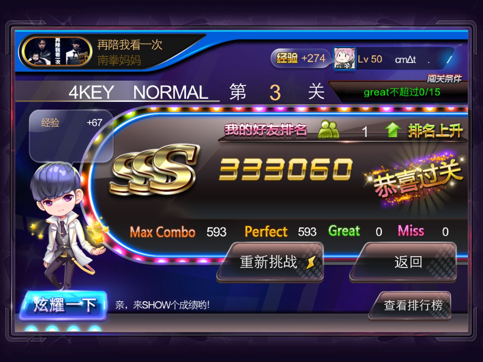 加油,顶楼主!我的第一首满分是PK场4K花之舞NM