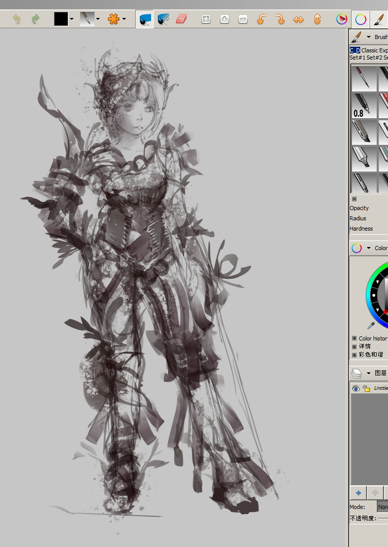 比例失准严重,,目前在这个软件中人头像完成度较高的一张,全程一直潜,还可以再强化,但感觉没什么意义,下面贴流程