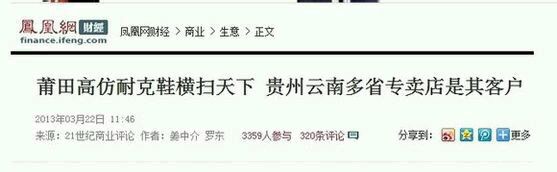 一个流传甚广的说法是,全球的耐克鞋中,有三成是莆田的高仿鞋。多年的操作使他们有能力通过耐克为鞋子预热准备的广告片,就能判断出所采用的技术和材料,并赶在耐克推出新品之前将产品推向市场。在莆田这个闻名遐迩的高仿运动鞋制造中心,这些商家似乎都不为自己的销路发愁。